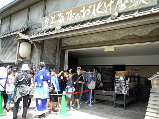 金閣寺内もスムーズに見学ができて、この時点でも25分の予定より早く進んでいました。これは決して見学の手を抜いたわけではなく、6年生のみんなの集合や整列がきちんとすばやくできたこと、説明等をしっかりと聞いていたこと、交通状況が比較的空いていたことなどが重なって、時間にゆとりができたものです。子どもたちには、うれしい、映画村での班行動30分プラスになりました。幸い、東大淀小学校が入村した時刻には、映画村も空いていて、おめあての「お化け屋敷」「忍者からくり屋敷」も並ばずに入れました。すべてが、ラッキーに回り、帰りの交通量も少なく、予定時間より約50分も早く、町への到着となりました。見送りにもお迎えにも、多くの保護者の方に来ていただき、本当にありがとうございました。