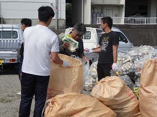 好天の下、東大淀地区と柏地区に分かれて、PTAリサイクル事業が行われました。8:00前より、軽トラック等が走り、地区の各戸口に出していただいた段ボールや新聞紙、アルミ缶、古着等を集めました。子どもたちも楽しそうに参加しました。