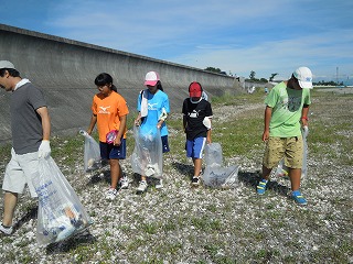 梅雨明け、かと思うような晴天の下、北浜中学校区青少年健全育成会議の行事、浜掃除が行われました。