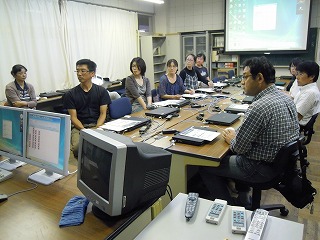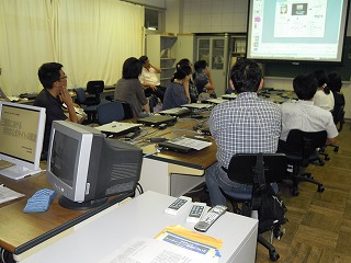 写真は、講師先生の実演を聞き入る会員の方々と実際の演習の様子