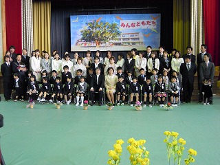 22名のピカピカの新入生を迎えました。122名の上級生と20名の職員、そして18名の来賓の方々が大きな声で校歌や「くすのきさん」を歌い、保護者の方と新入生の入学のお祝いをしました。