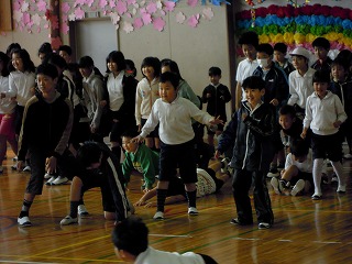 司会進行は、児童会のみなさん。全校で歓迎のアーチを作り、その中を1年生が入場、一人ひとり自己紹介と好きなものをアピールして、全校でレクリエーション・・・・「じゃんけん列車」「だるまさんがころんだ」を全校で楽しみました。