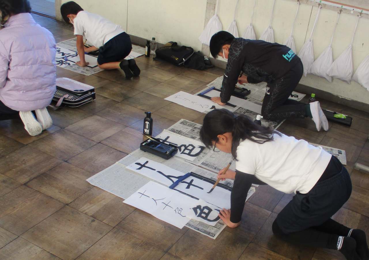 年初めの書初め教室があり、西村先生に教えに来ていただきました。