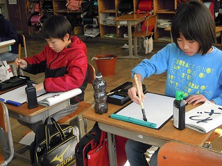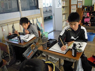 この時間は、書写の清書の時間で、「わざ」という文字を数枚書いての提出の時間でした。時折、ほっという、息抜きの声が漏れる程度で、静寂の中での書写の時間が流れます。こういう学びもイイですね。