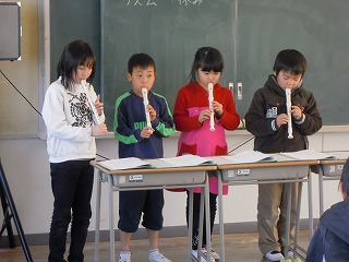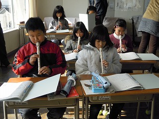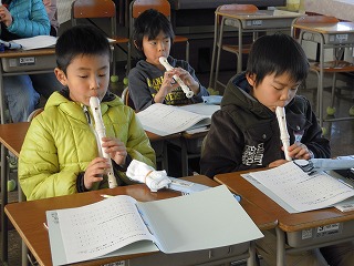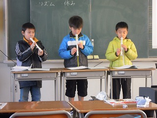 先週金曜日1/24、3年生で音楽科の授業研究があり、3年生が上達したアルトリコーダーの腕前を披露しました。