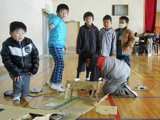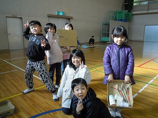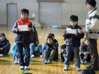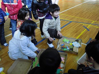 今日の2限目は、2年生が1年生を招待して、自分たちの手作りの遊具と記念品・お土産で、1年生をもてなす会(1年生を楽しませる会)が開かれました。