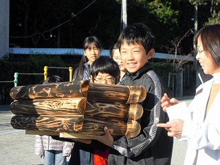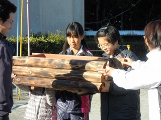 昨日1/16朝、三重県建設労働組合伊勢支部青年部の方が見えて、杉の木を焼き杉にして、大きなプランターの周りに接着させた「おしゃれで、大きなプランター」を2個プレゼントしていただきました(伊勢市内の小中学校に毎年2個ずつ贈呈している活動に一環だそうです)。