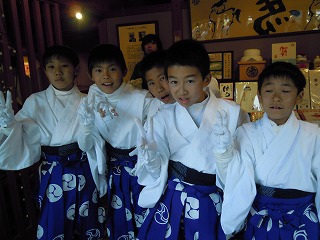午後1時〜は中高生の場、そして午後3時〜は、小学生の晴れ舞台と聞いていたので、午後3時前に出向きました。きりっとした顔つきで、笛を吹き、御頭を舞う姿は、学校生活で見せるものとは、またちがう雰囲気でした(舞う前の顔はいつもと同じでしたが)。有形無形のプラスがこの子どもたちにあるなぁ、とも思いました。