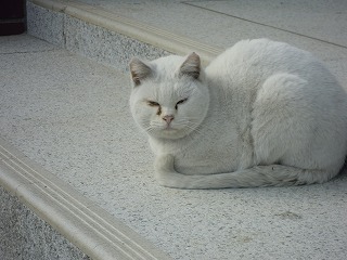 先週の木曜日に、登校する子どもたちについて、一匹のシロネコがついてきました。そして、ひなたぼっこをしながら、一日学校にいついてしまいました。休み時間は、子どもたちがグラウンドに出てくると、相手をしてもらえるので、子どもたちのそばへ寄っていきます。