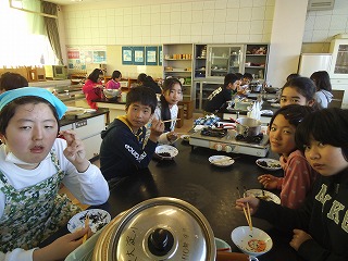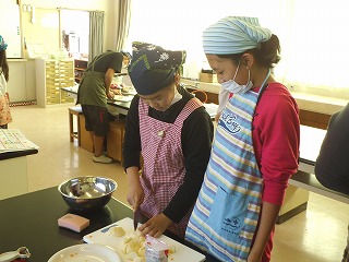 今年3回目の家庭科調理で手際のよさは、体験からでてきたもの。協働作業で、楽しそうに、材料を洗い、切りそろえ、そして炒め、煮て、調理していきます。「さすが・・・」