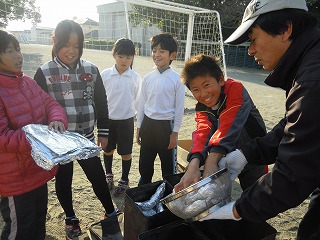 先日、学校の畑で育てたさつまいもと地域の方よりいただいたさつまいもを合わせて、5年生が2時間焼いもづくりをしました。全校では、恒例の「焼いもパーティ」と呼んでいます。