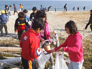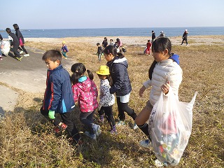 この海岸清掃でも5・6年生が主体です。1・2年生を補助しながら、根気良く作業をしてくれていました。「さすが」ですね!