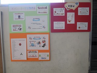 写真は、その人権標語と二階に掲示されているコンピュータクラブの年賀状作品 です。