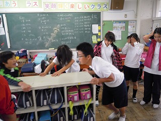 昨日は、一年に一度、その速報システムが作動するかどうかの実験の放送日だってので、10:00に、全校放送のラインで、iTVさんより「もうすぐ震度3の地震がきます。10、9、8、7・・・」という放送が流れました。私自身も、身を隠さなければ、と思いつつ、「子どもたちはどうだろう?」という関心の方が勝ってしまい、1・2年、3年と教室を見に行きました。