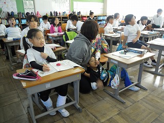 4年生は、先日、担任の先生がご出張で、私と教頭先生が代わりに教室に行きました。