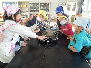 理科室兼家庭科室のホットプレートではじけるとうもろこしに大喜び!!