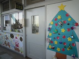 毎週木曜日に、学校安全ボランティアの3名の方がみえて、図書の整理や図書室の飾りつけなどをしていただいています。今はクリスマスムードでいっぱいです。そして年が明けると、お正月のかざりつけになるのでしょう…図書室前は今華やかですよ。
