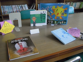 また、毎週金曜日に、伊勢市教育委員会からの委嘱で「図書館活性化支援員」という名で1名、図書室の整備や図書館教育に来校していただいています。その方が、新刊本の紹介や多くの図書の分類を子どもたちによくわかるようにセットしていただいています。