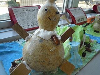 写真は、4年生前の、ひょうたんの仲間たちの立体作品と個別学習をするくすの木の仲間 です。