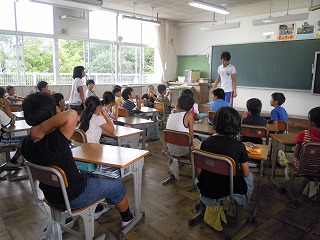 | 昨日はたいへんな天候の一日でした。 朝の間はのんびりとして、時折雨がさぁーっと降る程度でした。ところが、12:30過ぎに、三重県にも竜巻注意情報が発令されるのを確認してからは、私も緊張感が増し、さらにいくつもの雨雲をインターネットのレーダーで見て、「子どもたちの安全な下校を」考えました。 まず、突風・竜巻での子どもたちだけの判断では無理と考え、各通学団集団下校と担当教師が付いていくことにしました。とっさの際には、大人である教師の指示で動くことができると考えたことと、柏・三軒屋への下校が心配であったためです。全員が運動場へ並ぼうとする14:15、すごい雨となり、全員教室待機、習い事のある人は気をつけて近くへ行かせる処置をとりました。と同時に、下校が少し遅くなる旨と荒天により集団下校・教師付き添いをメールしました。 順次、お迎えにみえる保護者の方も出てきて、子どもたちの呼び出し等にてんやわんや・・・何とか雨があがり、急いで集団下校ー官舎から迎えにみえた保護者の方が、官舎の前の道路が排水がうまくいかず、冠水状態だと知らせてくれました。 30分後には、またすごい雨!遠くへ徒歩で帰った子どもたちには申し訳ない判断でした。が、とにかく、子どもたちは全員無事で、付き添いの先生もずぶぬれでしたが無事帰校しました。保護者のみなさん、ご心配をおかけしました。 下校の際に、写真を・・・と頭の片隅にあったのですが、 すっかり撮るのを忘れていました。校舎も被害がなく幸いでした。 | 2013/09/05 |  |