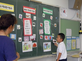 写真は、一年生の授業:食物の三要素での発表風景 です。