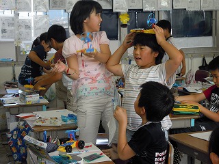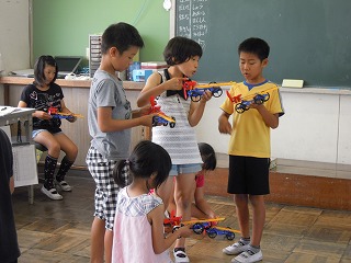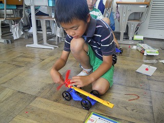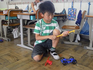 一方、4年生は太陽電池で走る車の制作と実際の走らせる実験中です。さらに、太陽の光だとなぜ走るのか、蛍光灯の光はなぜ蓄えることができないのか・・・など、学習がかなり考えて、話し合って進んでいく場面が増えています。さすが、4年生ですね、ユニークな意見やうがった意見が飛び交っていました。がんばれ、4年生!!!