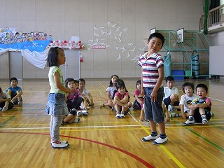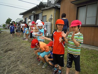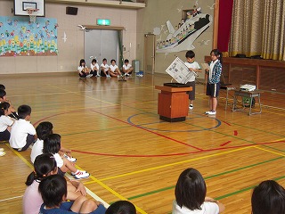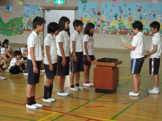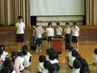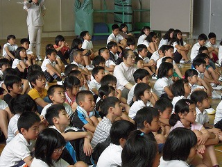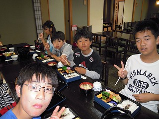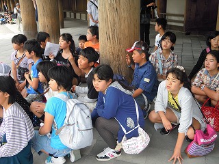 | 今週は毎日、5回にわたり、修学旅行のコースやその場その場での子どもたちのようすを、私の知っている範囲でお伝えしたいと思います。 雨が心配される5/28(火)7時、6年生の子どもたちは元気に、健康そうに登校してきました。担任の黒坂先生と教室で朝の会をしたあと、運動場に整列。見送りの教頭先生や玉木先生にあいさつをして、東大淀口バス停へ・・・ 保護者の方やお家の方の見送り多数ー毎年のことですが、本当にありがとうございます。子どもたちは、愛情いっぱいに育てられているんだなぁとつくづく思います。また、帰りのお迎えも出られる方はバス停車場までみえて、重ねてお礼申し上げます。 バスは、松阪インターより自動車道へ。この頃から、雨があたりはじめ、休憩の上野ドライブインでは雨! 名阪自動車道を降り、法隆寺近くになると、幸いなことに雨はあがり、法隆寺ではすごい観光客・修学旅行客の中、傘ももたずに無事見学を終えました。子どもたちは、ガイドさんの説明にもよく耳を傾け、エンタシスの柱、卍型や人型の手すり、五重塔や金堂を見学し、宝蔵院では、国宝の夢違観音や玉虫厨子を黒坂先生の説明を聞きながら観察しました・・・しかし、すごい人人人でした! この後、再び、バスへ。平城京の朱雀門前で記念撮影をしてから(このときは雨!)、昼食、東大寺伽藍を訪れるために、春日大社駐車場へ。昼食は、子どもたち思いの外、よく食べていました。その後、少しそのお店で買い物。目の前の若草山にいる鹿が寄ってきて、戯れる姿も・・・・・ 写真は、エンタシスの柱近くで説明を聴く6年生、五重塔を見学する6年生、昼食場所にて です。 明日は、東大寺を中心にお知らせします。 | 2013/06/03 |  |