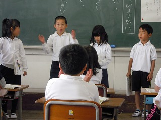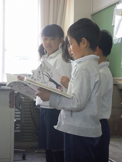 2年生は、私が教室へ行ったときは、国語の音読発表会をしていました。
