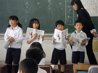 写真は、その音読発表のようす です。