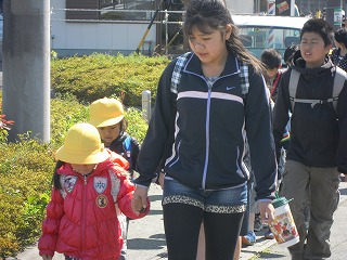 6年生が1年生の手を引いて、しかも自分が車道側を自然と歩いているのを見て、これまた少し感動しました。本当に「次に自分が何をするのか、どう動けばいいのかをわかっているなぁ」と感心しました。後から、6年生の学級通信で、道を歩いているときに、お互いに声をかけ合って、自然とそういう行動になってそうです。それを知って、再び感心しました。