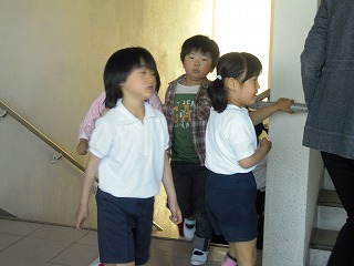 写真は、少し速足で階段へ急ぐ各学年です。