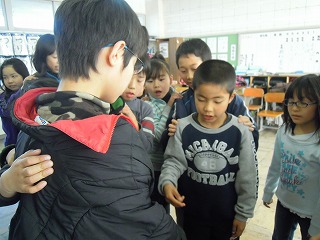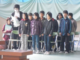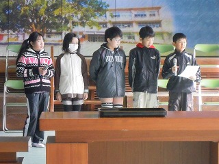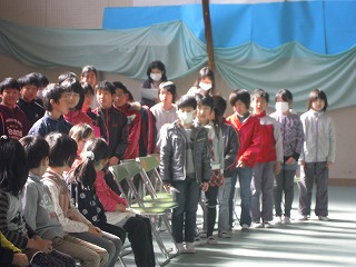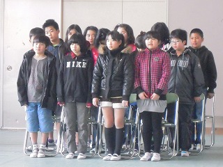 さて、最後の集会では、3/11の日ということもあり、校長の私の言葉かけに応じ、全員で黙祷をしました。その次に加藤先生のお話があり、続いて、児童会が先生クイズをしました。この児童会のメンバーでの仕事も最終となりそうです、よくがんばった児童会面々です。