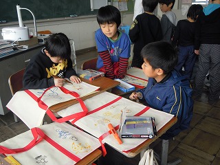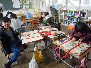 昨日は、3年生へ進級するときにいろんなものを入れるトートバッグにお絵かきタイムに出くわしました。