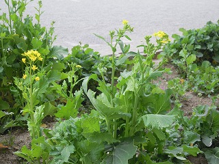 また、職員室前の花壇では、4年生が冬前に植えたアブラナが可憐な黄色い花を咲かせ始めました。