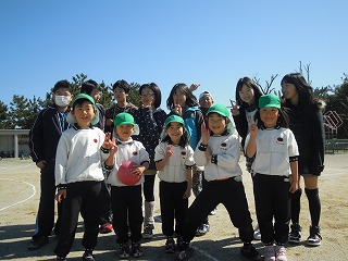 授業見学の後、5年生と体育館でソフトバレーボールを使ってのドッヂボール!「ワァワァ、キャアキャア」と笑いがあふれる体育館でした。