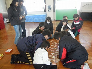 写真は、ドッヂボールチームの記念撮影、カルタとりの風景 です。