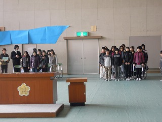 4年生の表情がきりっと引き締まった感じがしました。行事ではあるものの、一つの儀式を迎える張り詰めた空気が一瞬漂いました。