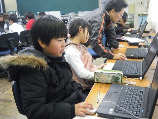 コンピュータルームでの活動ですが、子どもたちはほとんどが好きですね。コンピュータを立ち上げて、先生の指示があると、喜んで自分の好きなサイトへネットサーフィンを開始しました。今日の授業は、「自分の好きなサイトをお気に入りに保存して、そのよさを説明しよう」そして「ネットでの危険と注意することをを学ぼう」です。前半は笑顔で、後半は真剣に学ぶ姿が印象的でした。