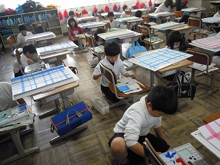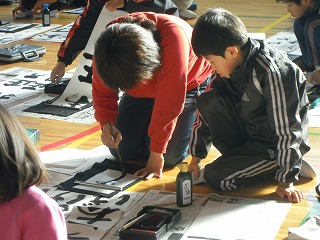 双方の学年とも、ピーンと張り詰めた雰囲気の中、集中して書き初めをする姿ばかりで、感心をしました。また、書く字が丁寧でかつしっかりとしたものがとても多かったです。