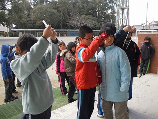 今朝の外気温は、朝7時で−1℃でした。先週金曜日4年生は理科の授業で外気温を測っていました。運動場で強い北風の中のことです。