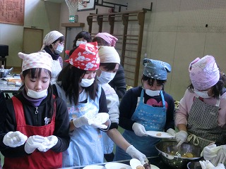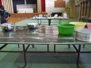 三臼搗きました、その後は、餅を一個ずつ食べやすい大きさに分けて、餡やきな粉などをまぶしていきます。楽しい活動で、笑顔と真剣な顔が交差している体育館でした。5年生のみなさん、よくやったね!!!