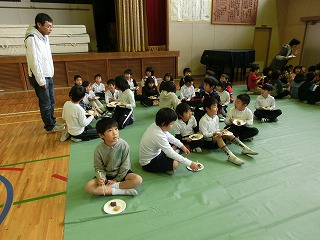 その結果、行事だけが楽しく残っています。5年生を初め、他の学年の子どもたちも楽しみです。本校特別非常勤講師の上島さんを初め、手返しに地域の方々、また、5年生の保護者やおうちの方々も手伝っての一大行事です。