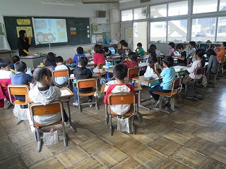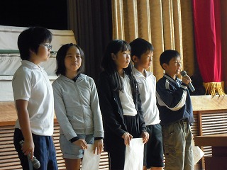 1限目は、月一回の児童集会です(運動会の関係で、9月は実施できませんでした)。この集会では、各委員会の連絡やイベント、児童会本部からの活動等が企画されています。今日は、美化委員会の連絡と本部からのクイズ大会でした。校歌と「くすの木さん」を大きな声で歌い、終了でした。