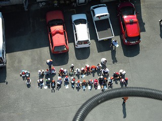 そして、外へ出て、はしご車見学。私が代表で、はしご車のバスケットに乗り、地上35mまで上がりました。遠く伊勢湾も見え、気持ちよかったです(子どもたちにはうらやましがられました)。