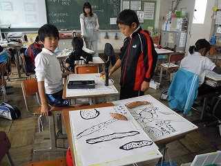 特別講師をお招きして、作成の手順を聞いた後、楽しそうに3限連続で図工・・・笑顔がはじけていましたね!!!