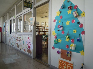いつも、学校安全ボランティア・図書館ボランティアの西村さん・村井さん・林さんが季節季節の飾りをしていただいている東大淀小図書館はクリスマスムードです。「東大淀小の子どもたちにすてきなクリスマスを」という温かいメッセージつきです。