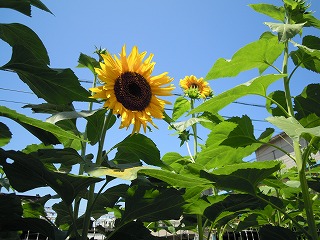 4年生は、自分たちが育てたひょうたんやニガウリ、そして今満開のヒマワリを観察しています。前々回の「校長室から」でお知らせした「5年のヒマワリ」は私の勘ちがいで、「4年のヒマワリ」が正しいものです、申し訳ありません。