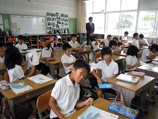 今日は、子どもたちが夏休みの宿題や作品をたくさんもって登校してきました。みんな、エライねぇ、と朝いつものように昇降口で声をかけました。