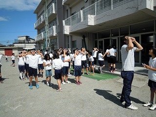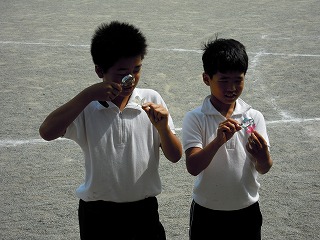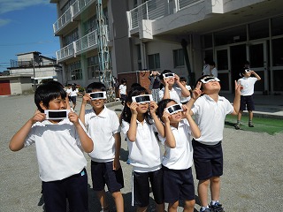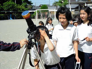 「あ〜ぁ、見えた」「ある、ある左や」と驚きの喚声を上げ、笑顔で、今年度の二回目の天体ショー観察を行いました。