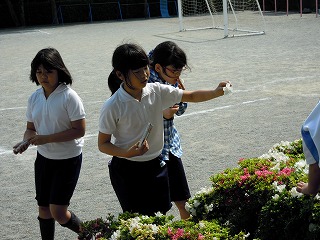 5年生が植えた苗(稲)もすくすくと育ってきています。5年生は苗の残りを校庭のすみで、バケツ水稲栽培をしています。職員室前や玄関前のツツジが満開で、子どもたちは蜜を吸ったり、花びらを観察したりしています。5年生は、おしべとめしべの観察に花壇に出てきていました。